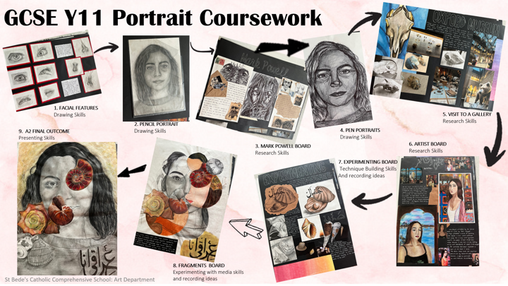 In Component 1 (portfolio) students develop responses to initial starting points, project briefs or specified tasks and realise intentions informed by research, the development and refinement of ideas and meaningful engagement with selected sources. Responses will include evidence of drawing for different purposes and needs and written annotation.