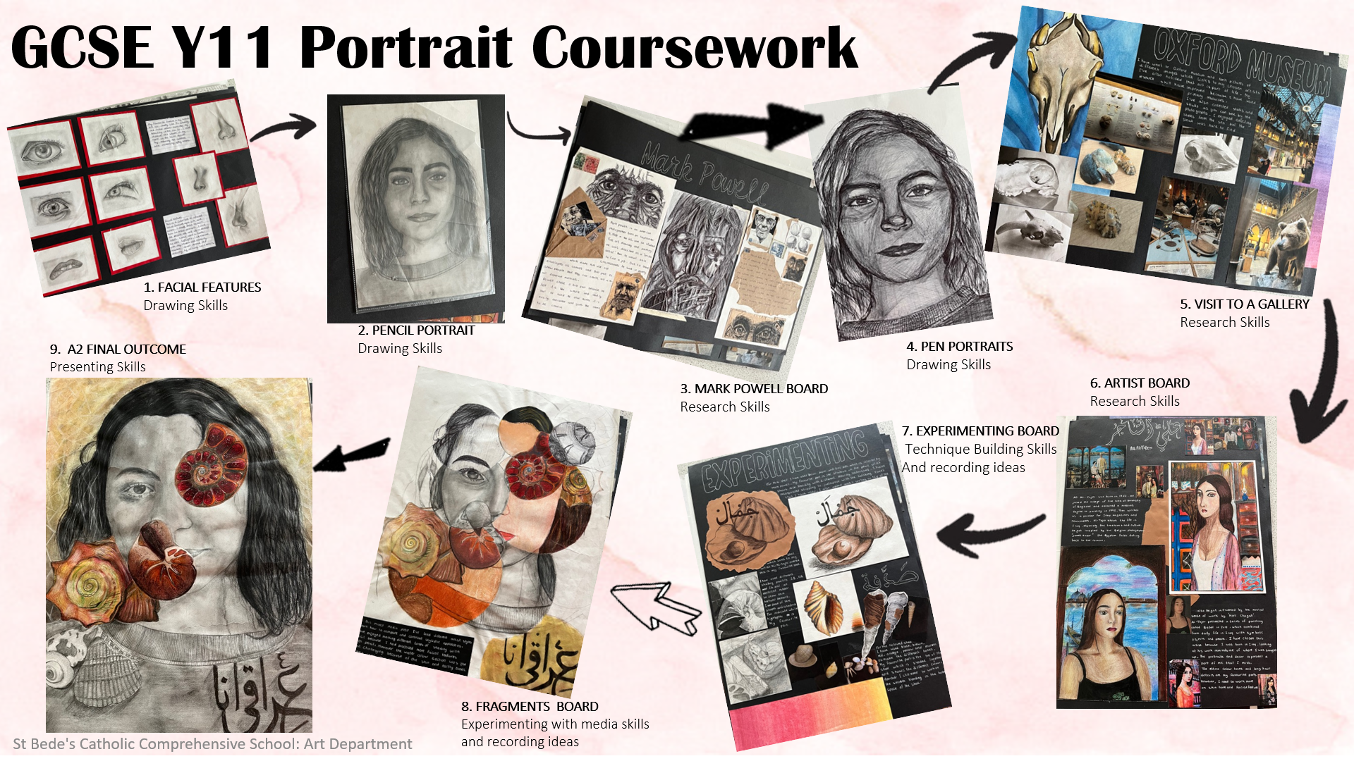 - Producing creative and personalised sketchbooks that show a range of techniques and skills using different materials.